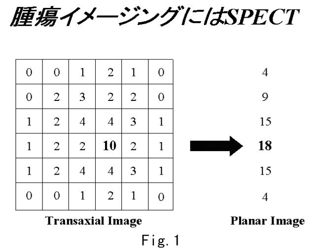 Fig.7の式は、元々、PETにおいて偶発同時計数を補正するのに使われた式で、測定されたプロジェクションデータに何らかのオフセットを持っている場合、これを取り除くのに利用できる。この式の利点はサブトラクションすることなしにオフセットが取り除けるので、投影データをあらかじめサブトラクションする方法に比べてS/Nが良いことが報告されている[6]。